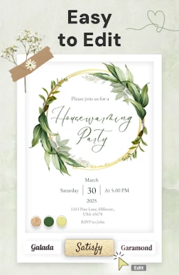 Create invitation cards in minutes with the invitation card maker app—no design skills are needed, it is quick & easy to use. Effortlessly add RSVP options to track guest responses and simplify event planning.