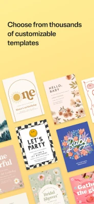 • Personalize free design templates with photos from your phone, or fully customize Premium invitations and envelopes