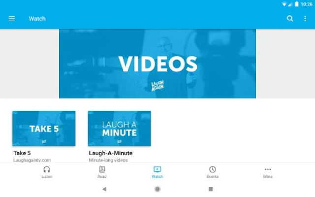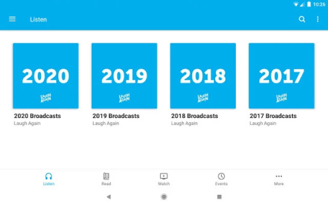 Now you can access the program easily through our app. -Listen and download the daily 5-minute broadcast featuring Phil Callaway -Read Phil's weekly blog for a dose of encouragement, humour, and godly wisdom -Watch ministry-related videos For more information on Laugh Again please visit: http://www.laughagain.ca For users in the USA please visit: http://www.laughagain.us